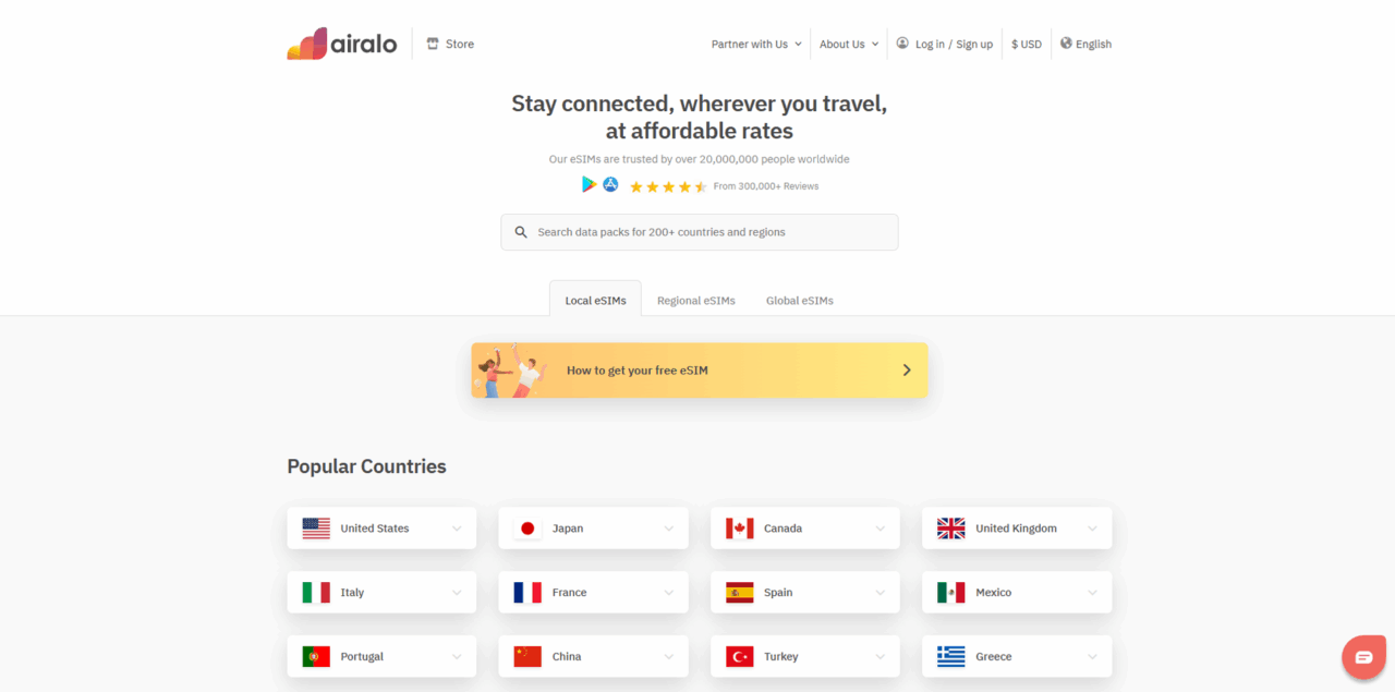Airalo הוא בין הבחירות המובילות שלנו ל-eSIM עבור נוסעים מזדמנים שמחפשים תוכניות eSIM זולות וקלות לשימוש. הוא מציע מגוון רחב של אפשרויות ספציפיות למדינות במחירים הוגנים, עם הפעלה פשוטה דרך אפליקציה או אתר. Airalo אידיאלי לטיולים קצרים או שימוש קל בנתונים ברוב היעדים הגדולים.