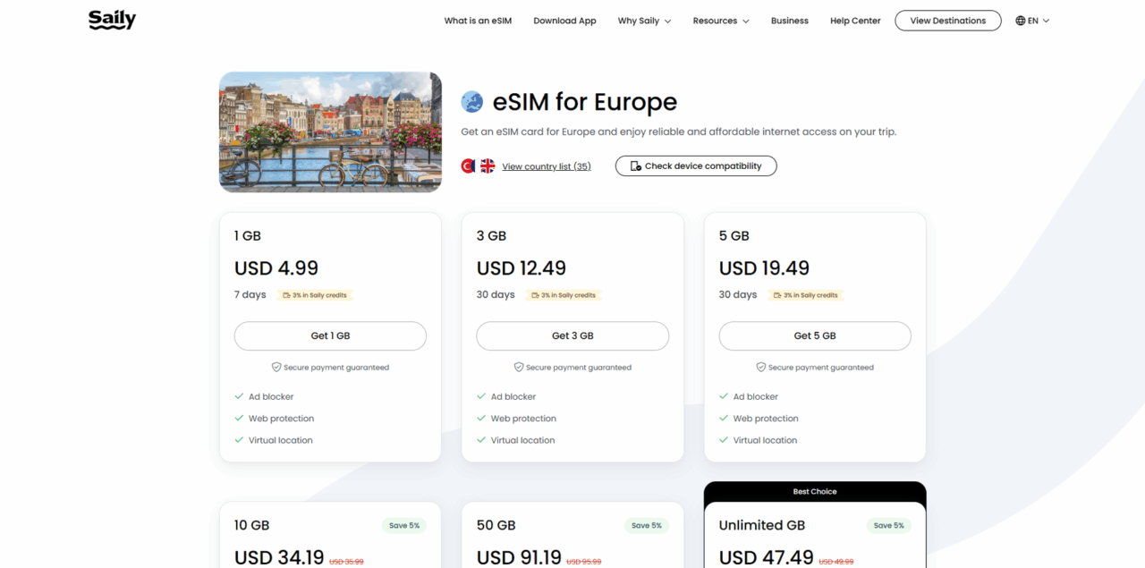 למרות הדגש על טכנולוגיה Saily היא בחירה מצויינת במחיר אטרטיבי גם למטיילים רגילים ומציעה אינטרנט איכותי ומהיר למגוון יעדים