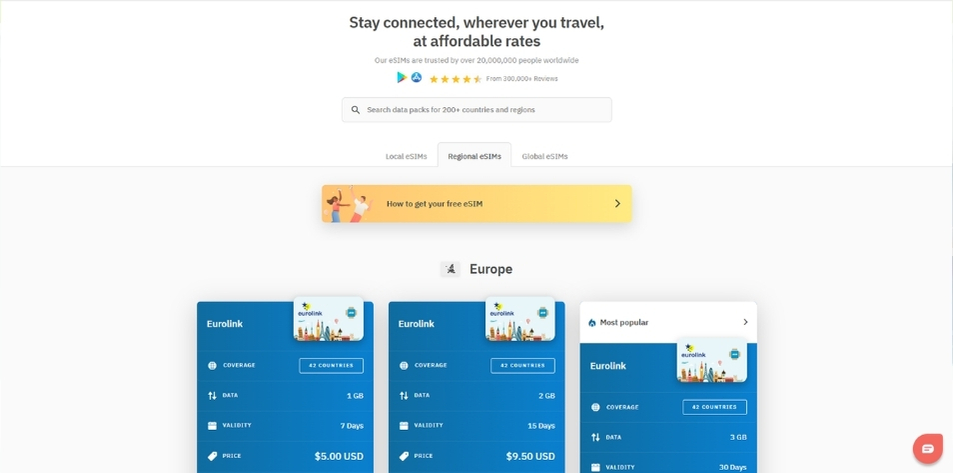 Airalo is a global eSIM provider known for its broad selection of country-specific and regional plans. With coverage in over 200 countries, Airalo has built a large user base, especially among tourists and digital nomads looking for affordable data.